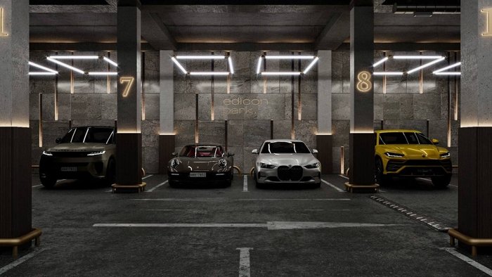 Зачем искать место для парковки на улице, если есть вместительный подземный паркинг, с лифтами которые доставят на нужный этаж.