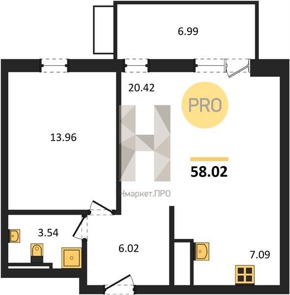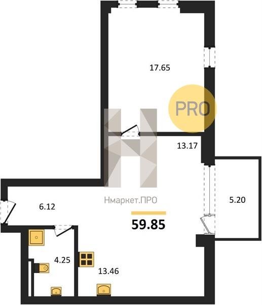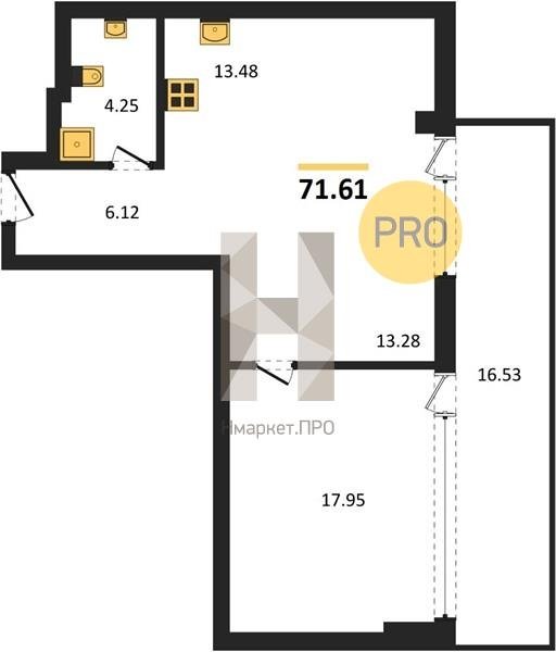 Площадь от 53.13 м2