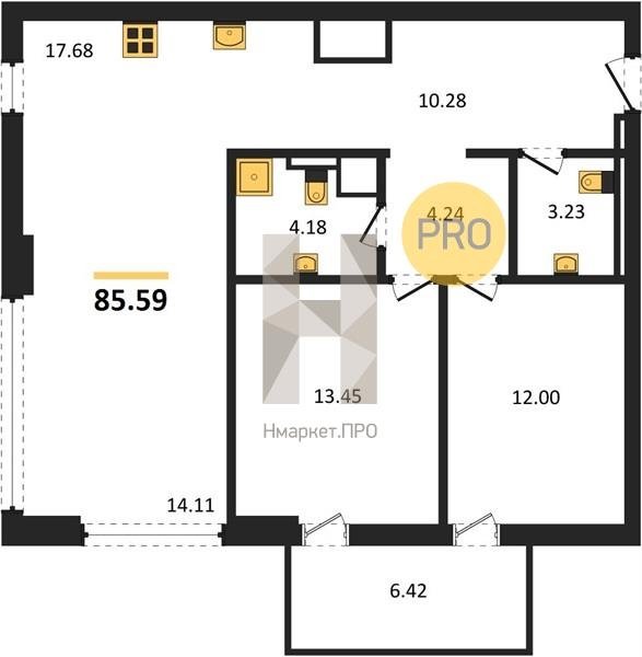 Площадь от 85.59 м2