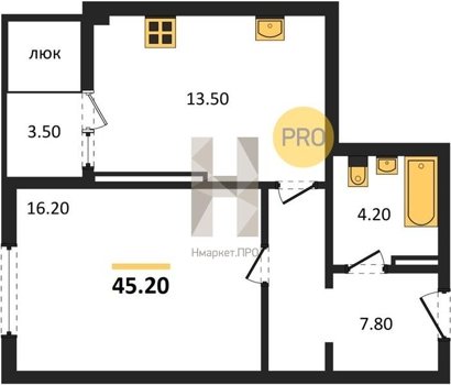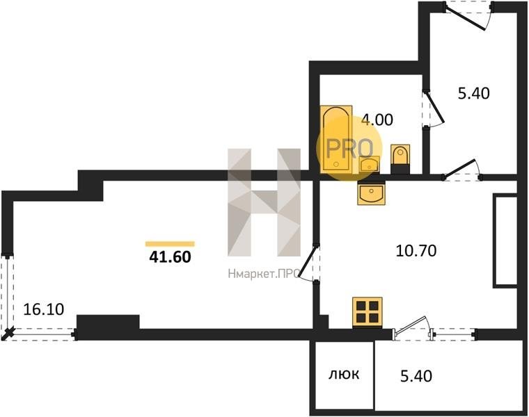 Площадь от 34.4 м2