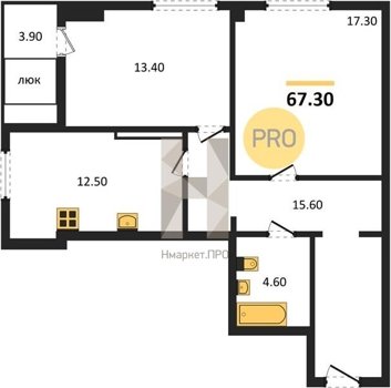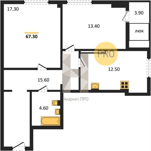 Площадь от 67.1 м2