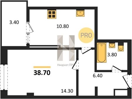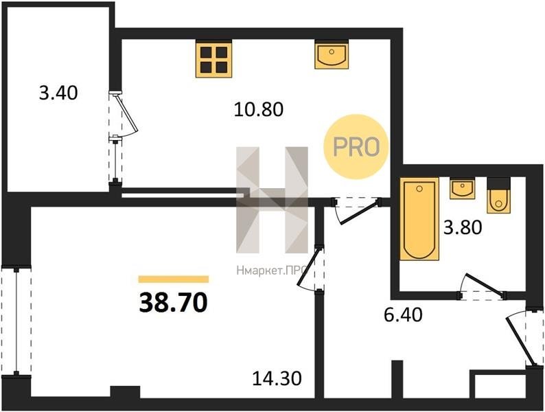 Площадь от 38.7 м2