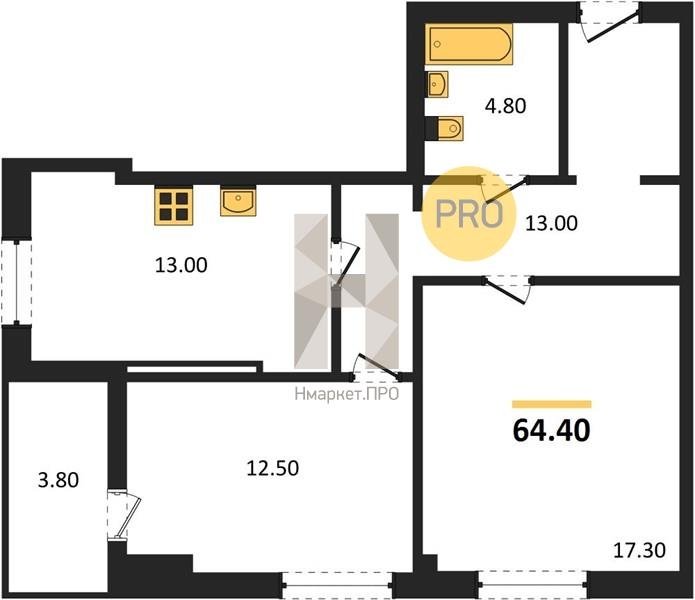 Площадь от 64.4 м2